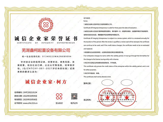 誠信企業(yè)家榮譽證書